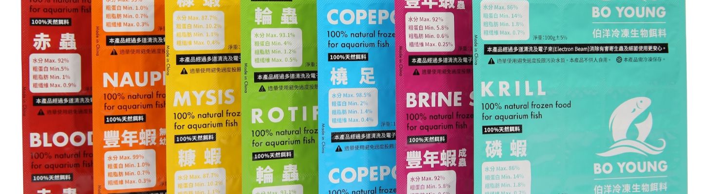 伯洋為一間專業的天然冷凍生物餌料經營商,擁有多年的水生物養殖及繁殖經驗,能夠為市場上各類不同的水生物提供多種餌料選擇。在成立之初時,我們看到了許多水生物的飼養難處及不便,因此伯洋便開始致力於推廣及改善現行餌料的使用不便之處,透過我們的專業知識及經驗,伯洋的天然餌料能為不同的水生物依照不同階段與口徑,提供多項選擇參考,希望能為水族產業的推廣盡一份心力。