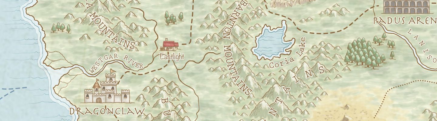 我們精心繪製出灰島的地圖,在這個擁有各種地形地貌、天氣、文化等的神奇島嶼上,記錄著每個奇幻生物的棲息地、習性,以及背景故事,讓我們的作品角色更能深植人心。