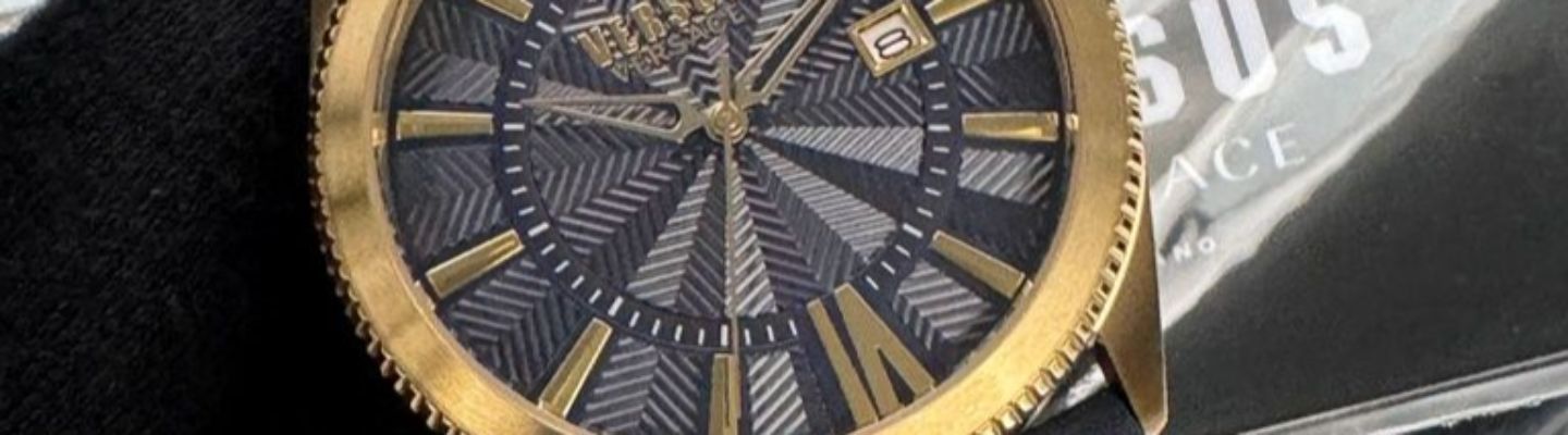 VERSUS VERSACE手錶,編號VV00381,44mm金色錶殼,寶藍錶帶款
