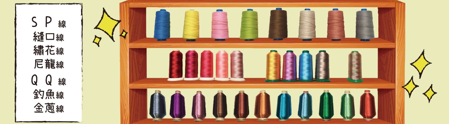 🧵專業大量製造: SP縫紉線、迷你縫紉線、繡花線、尼龍線、伸縮線、金蔥線、釣魚線、麻繩、棉繩、五色線、紅紗線、中國結、流蘇、A線、蠟線、仿皮繩、彈力線、特多龍、繩子、鬆緊帶、織帶、緞帶等。