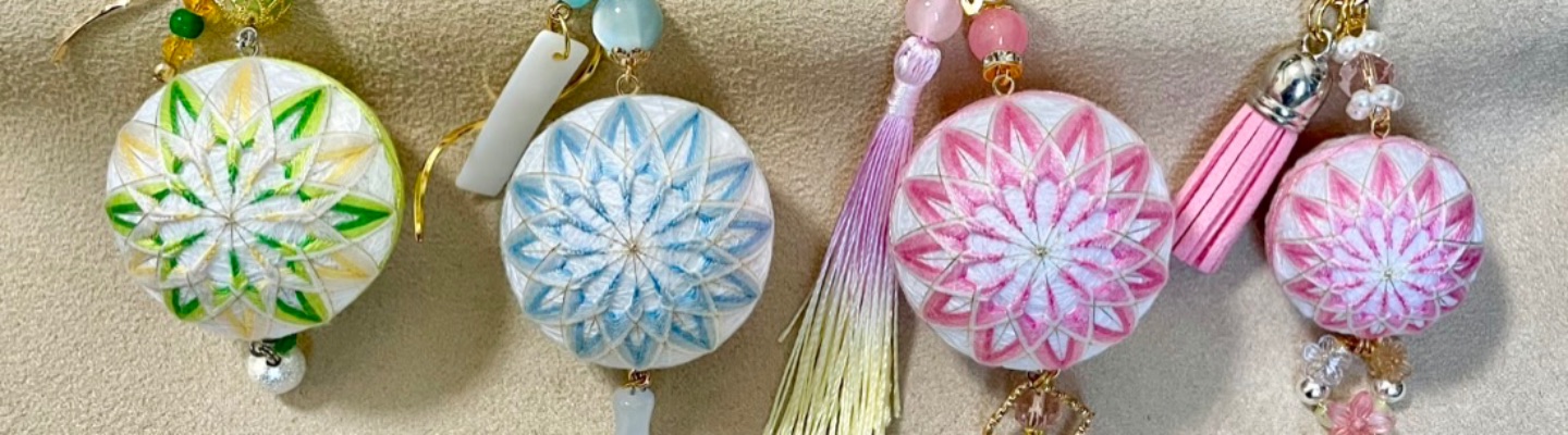 3cm的手鞠球是比較前期的作品,技術還沒有那麼穩定,有許多是隨意搭配。球芯皆為保麗龍球,價格包含吊飾配好。