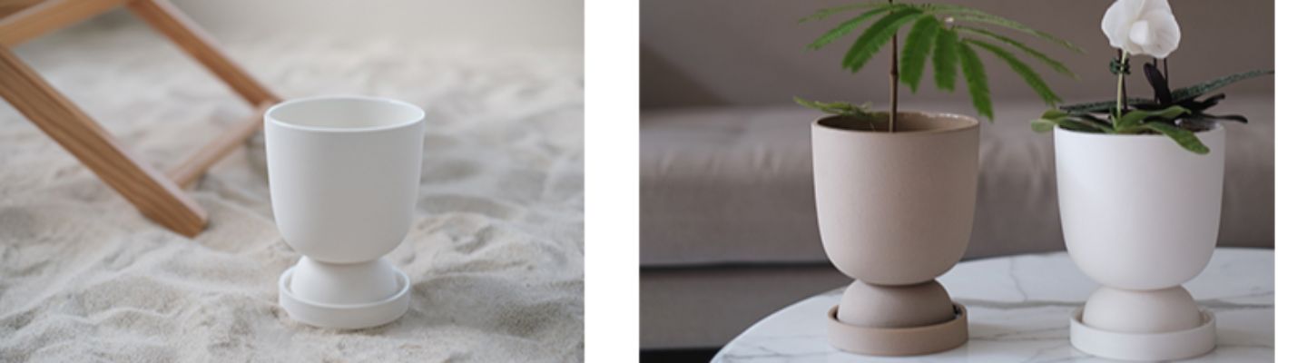 2022 仲夏誕生的「DR種夏盆」,底部以半圓小宇宙,撐起上方的主盆器。透過多次的比例拿捏及製作討論,完成我們心中美好想像且實用尺寸之陶瓷盆。