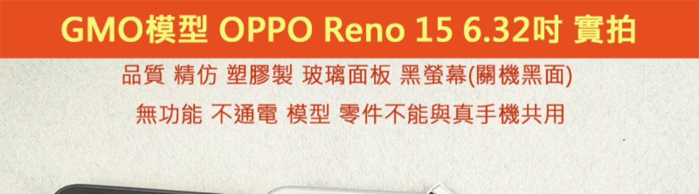 GMO模型精仿塑膠玻璃螢幕OPPO Reno 15 6.32吋 展示Dummy樣品包膜上繳交差沒收假機道具拍戲摔機仿製