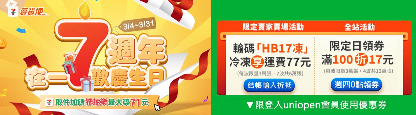 ❇️ 常溫店到店 - 輸入【HB17】免運