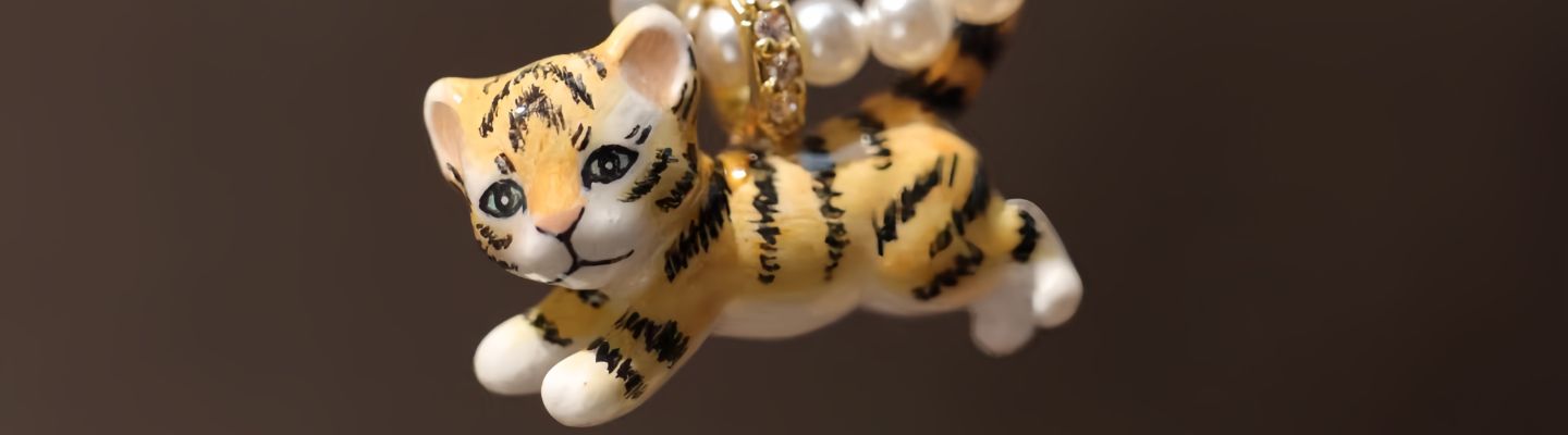 yuniqueBACKYARD後院手工琺瑯飾品萌虎琺瑯鋯石珍珠項鍊