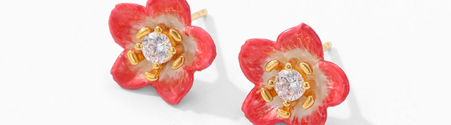 小雛菊蜜蜂琺瑯耳環