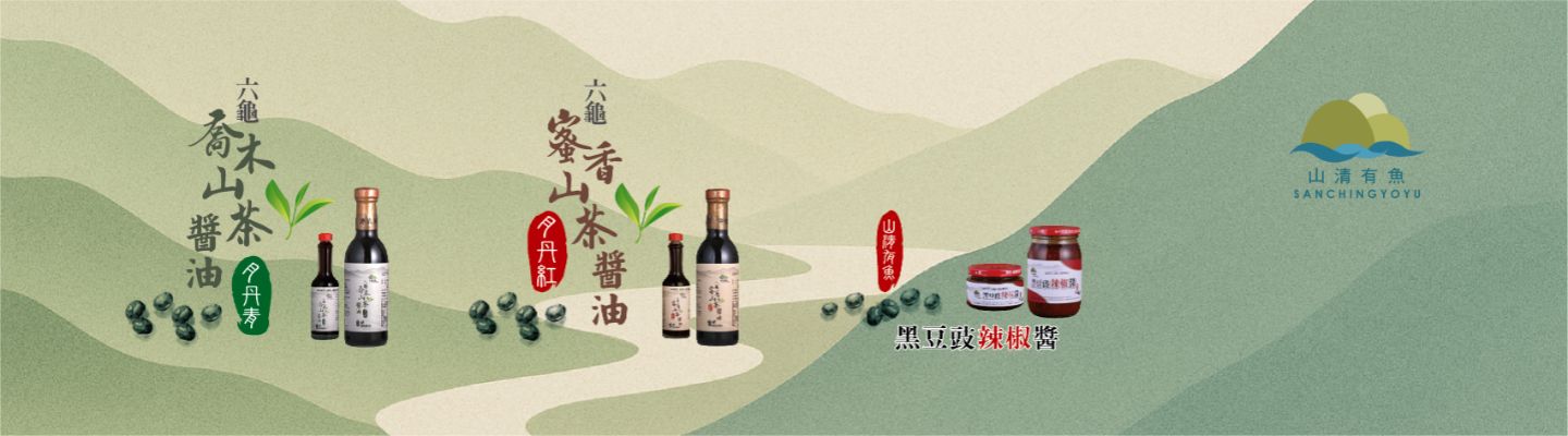 我們的【六龜山茶醬油】以台灣在地本土黑豆為基底,結合六龜原生種喬木山茶的清香雅韻,無添加人工食品添加物,依循傳統古法釀造工藝,長時間自然發酵,點點滴滴都用心,將品質、風味留住,造就風味獨特、濃郁卻不厚重、回甘細緻的純釀醬油。