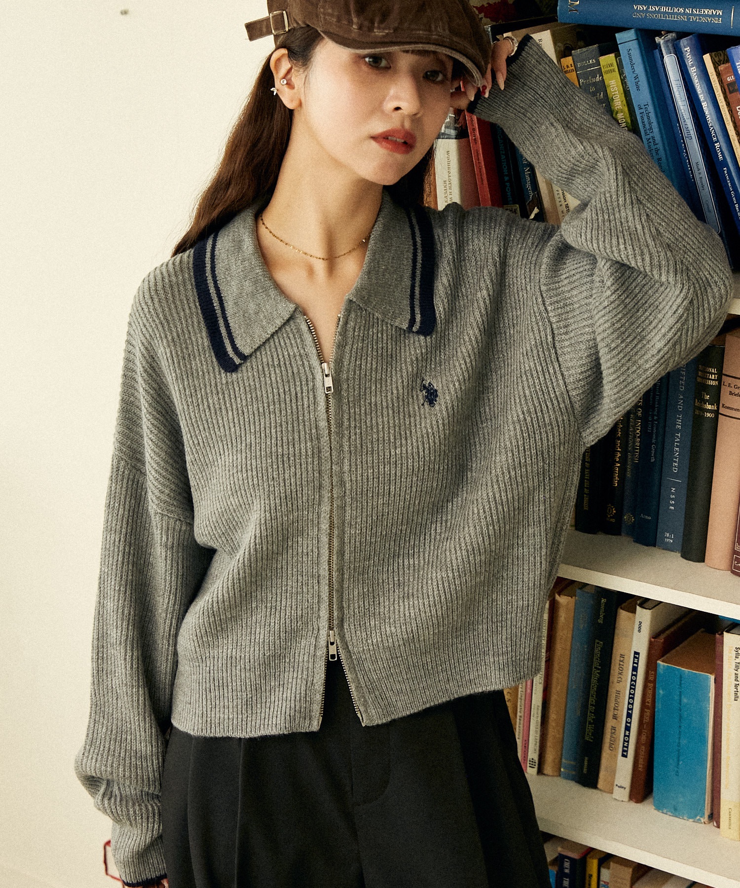 U.S. POLO ASSN. 假兩件撞色開襟針織衣