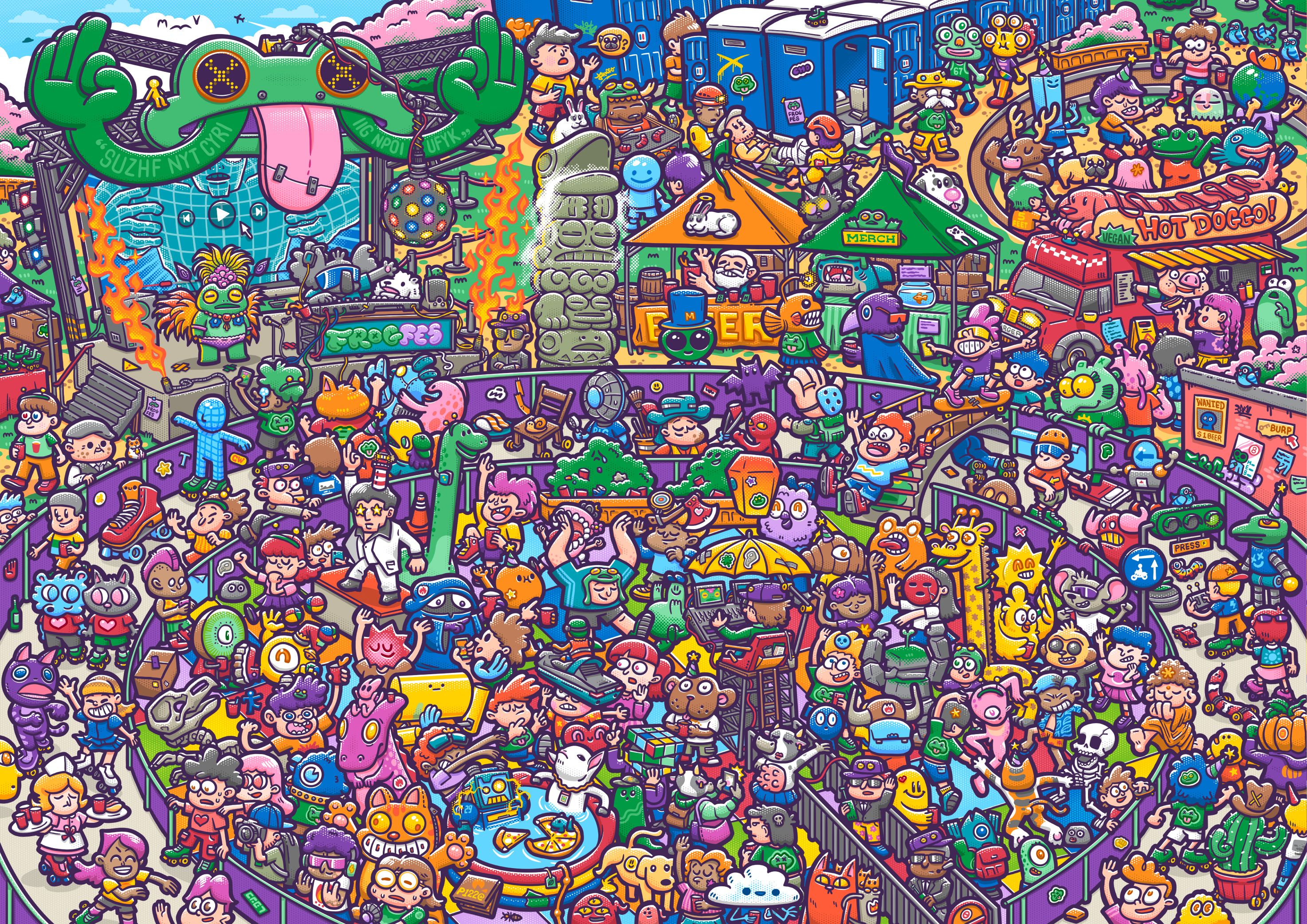 小雞崴力的塗鴉多重宇宙,在現實與幻想之中交錯膨脹,融合出古怪且個性鮮明的滿版生物們,帶來既暴走又五顏六色的視覺饗宴;還有細緻的手繪代針筆創作,帶給你寫實又荒誕的畫面。細看圖面 — 說不定能發掘意想不到的彩蛋哦!