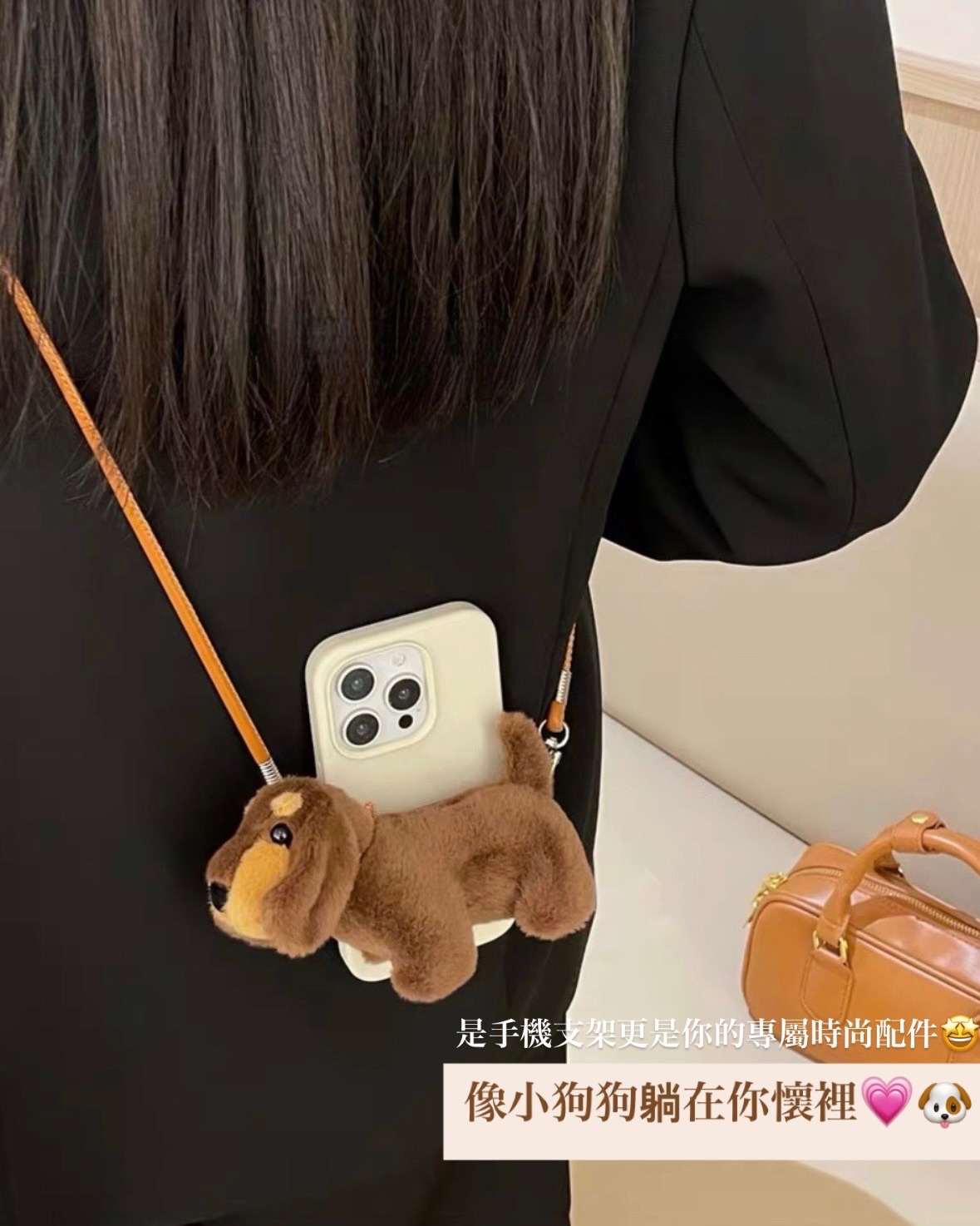 超萌臘腸狗 手機背夾掛繩