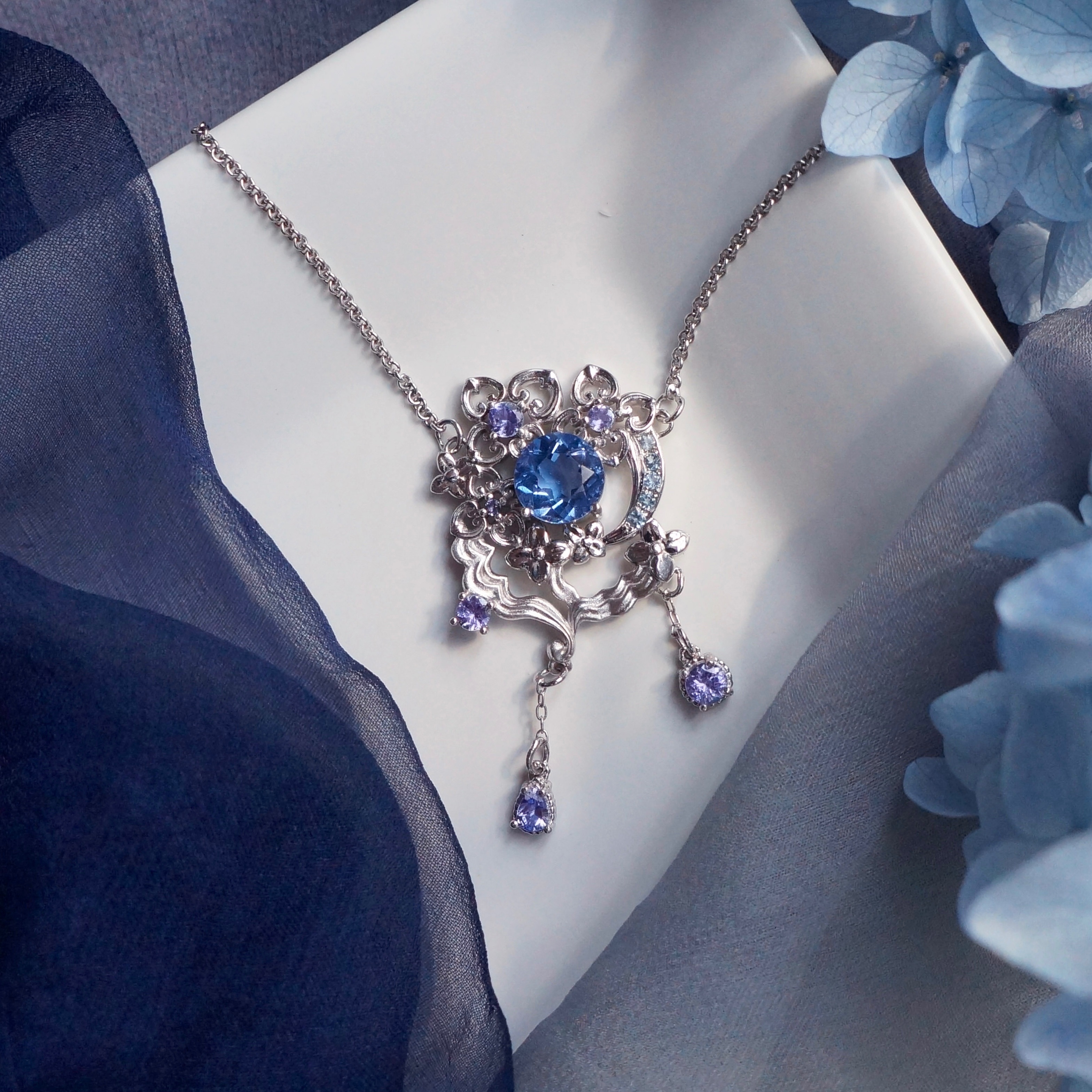 飾品材質部分都是925或999純銀,寶石除鋯石皆為天然寶石和半寶石,電鍍有分珠寶電鍍及工業電鍍價格上兩者差異較大,珠寶電鍍及工業電鍍價格上兩者差異較大,珠寶電鍍通常用於高級k金珠寶直接把白k、黃k和玫瑰金色直接鍍上飾品(使用貴金屬不易過敏),而工業電鍍是把鎳鍍上去後再鍍一層顏色(鎳是可能會造成過敏的材質),如果會對飾品過敏都可以在下單前找設計師談要改什麼材質和花費。