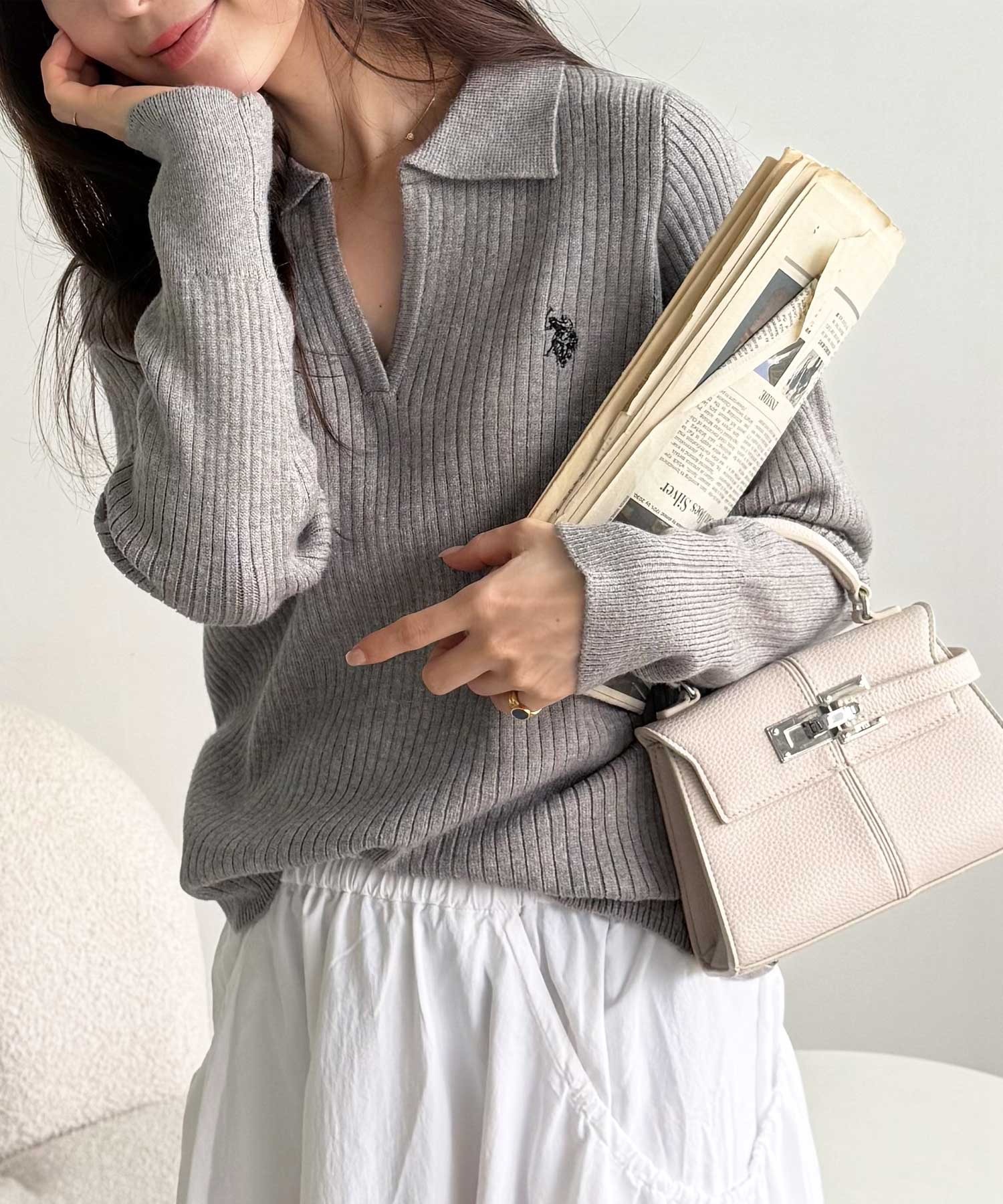U.S. POLO ASSN.上胸開衩針織上衣