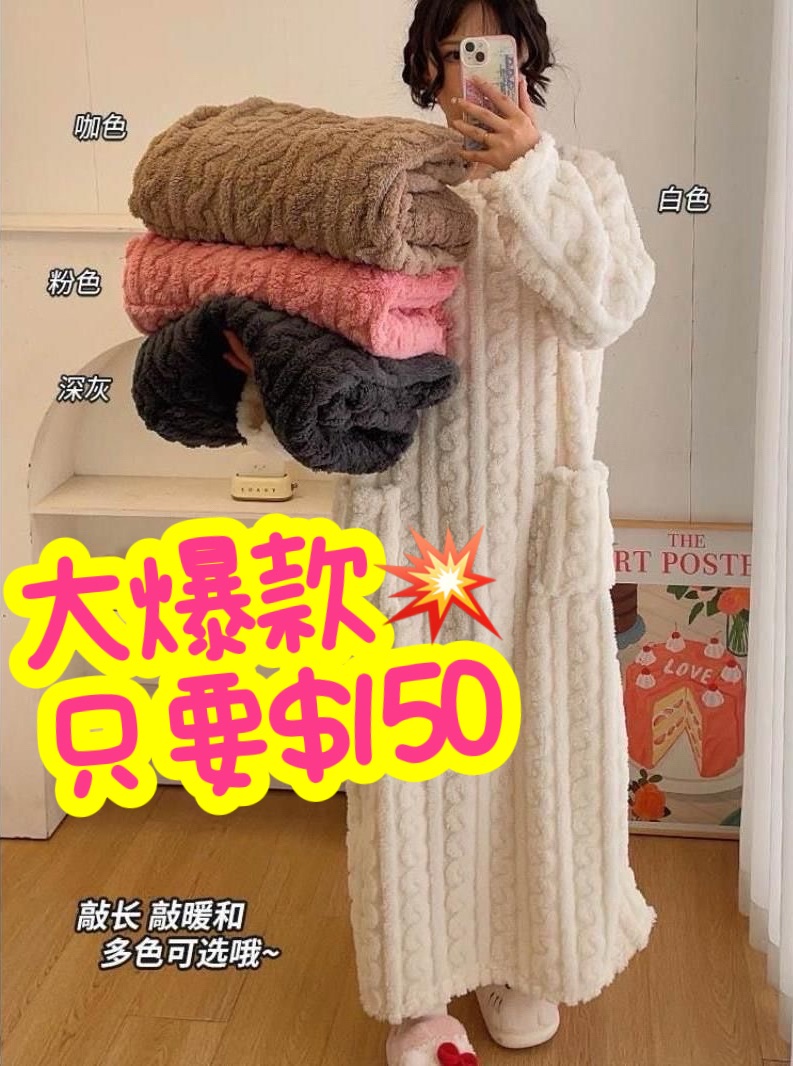 珊瑚絨睡裙-紫+咖啡.立體壓紋上衣-黑+灰XL-謝芯妍