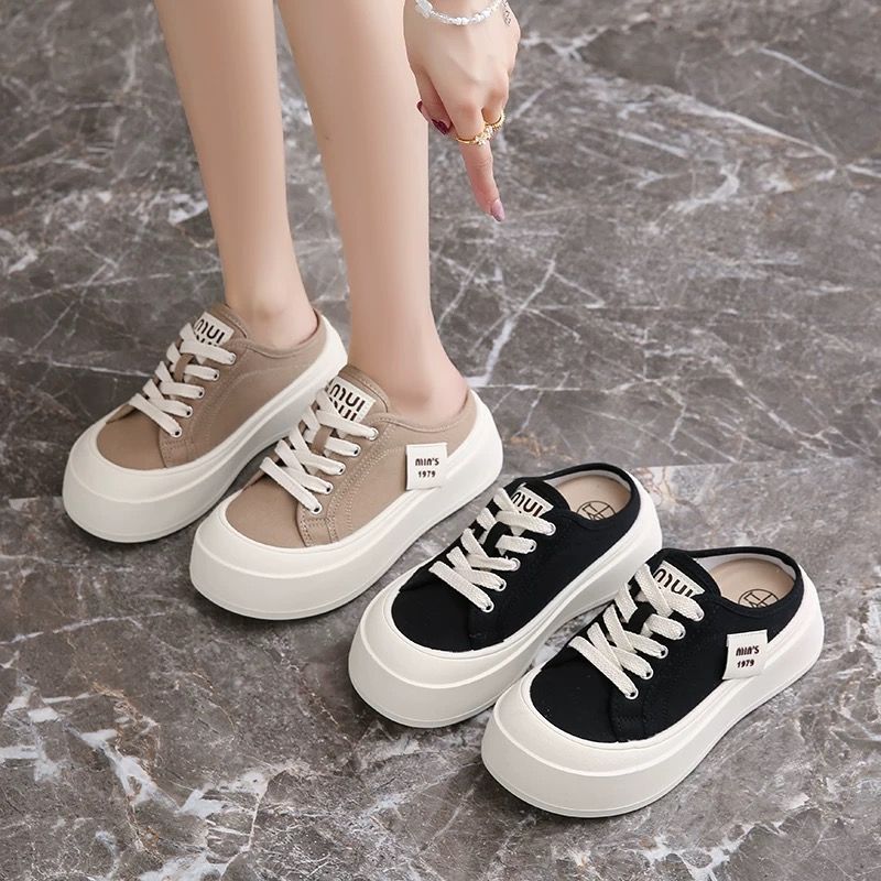 22-19質感透氣棉質 好穿軟底 綁帶厚底拖鞋 穆勒鞋 懶人鞋