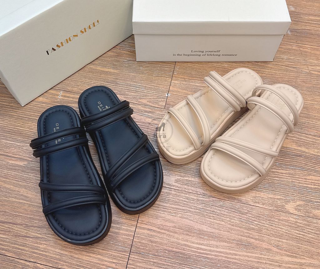 2501簡約純色風優雅細帶 好穿氣墊感 可兩穿 厚底 涼拖鞋