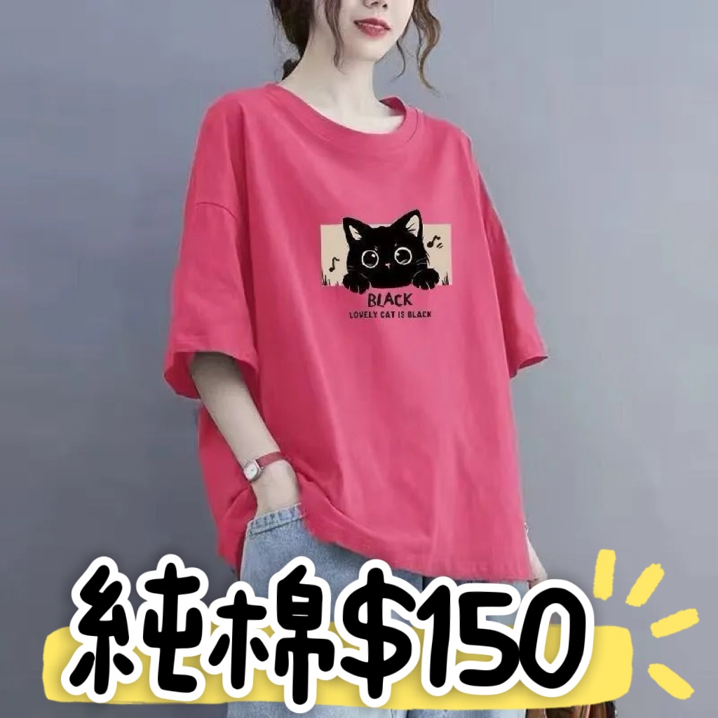 純棉貓咪T-M桃紅+深灰-張瑛真