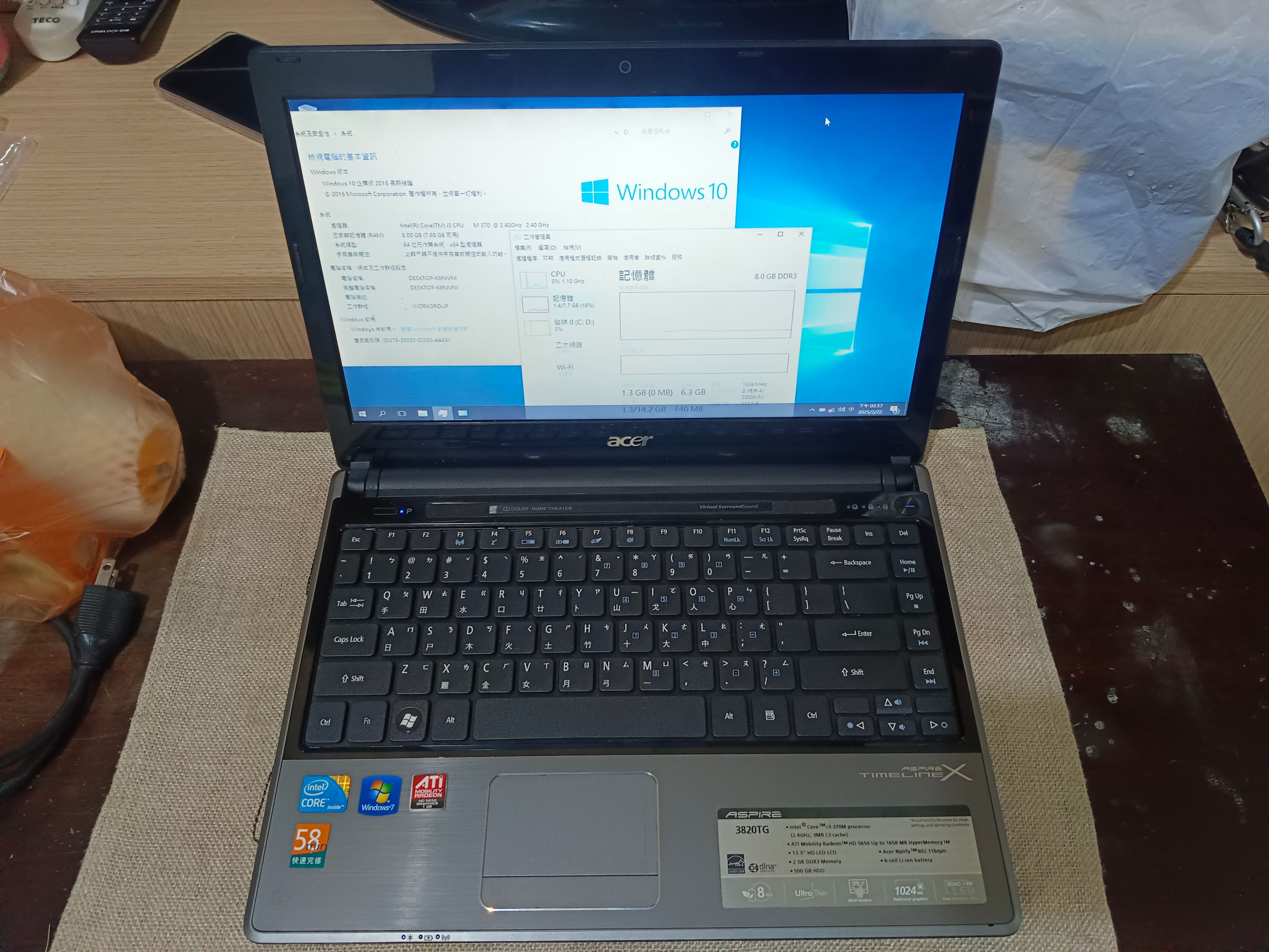 Acer 3820tg 13.3吋/8g ram/120g ssd/2小時電力