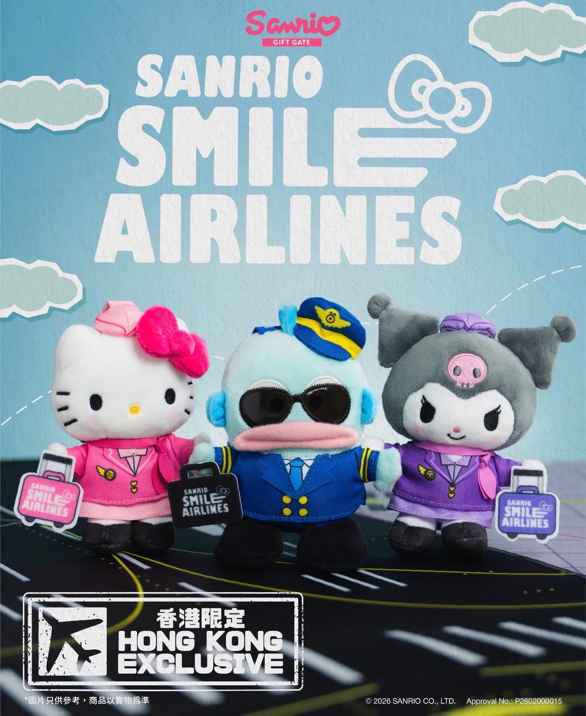 ❮香港限定❯ Sanrio Smile 航空系列三麗鷗Kitty醜魚酷洛米空姐機長掛件吊飾鑰匙圈